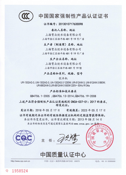 東莞市賀一飲水設備有限公司為賀眾牌飲水設備東莞授權總代理商,證號24019,負責上海賀眾飲水設備所產制的賀眾牌相關產品的銷售以及售后服務。